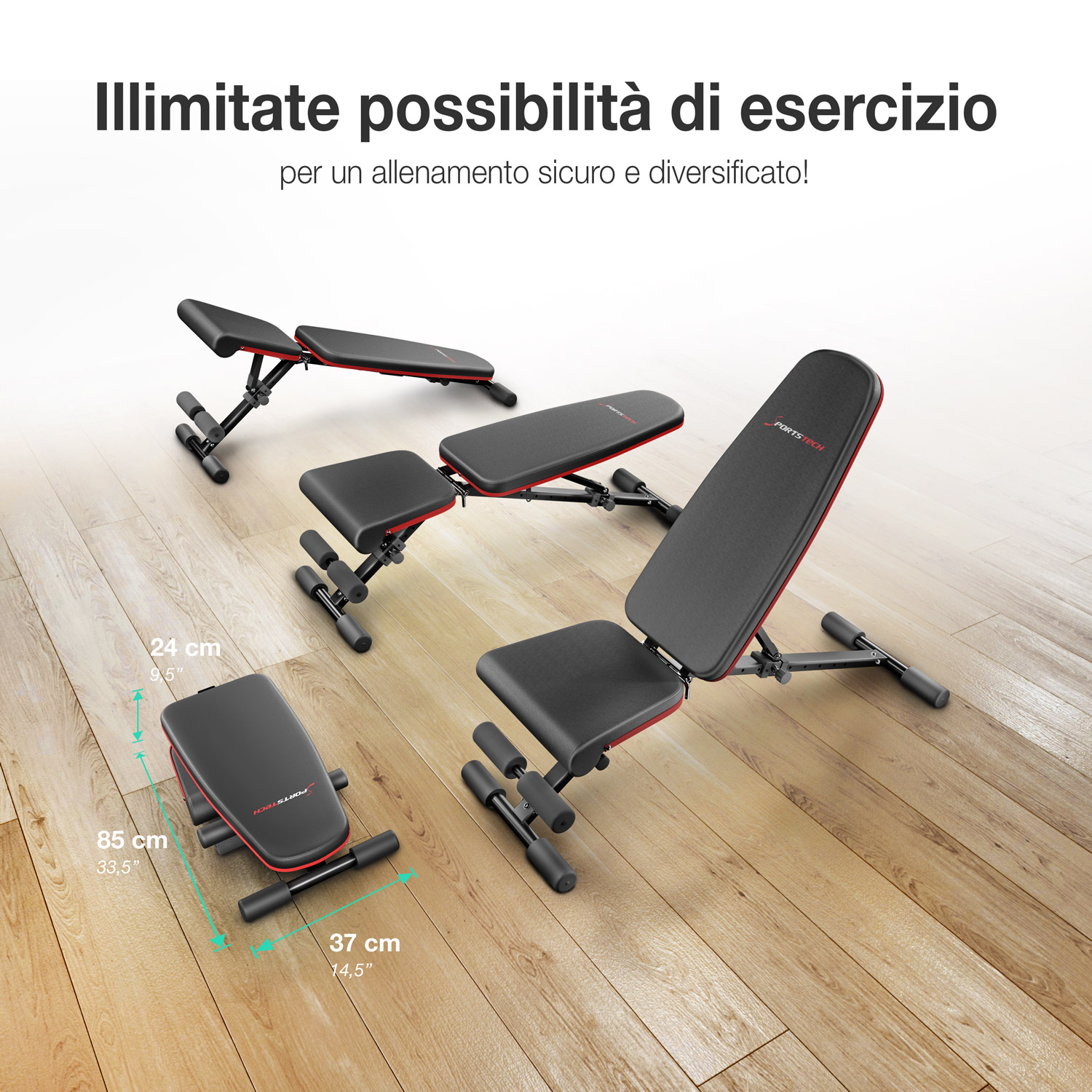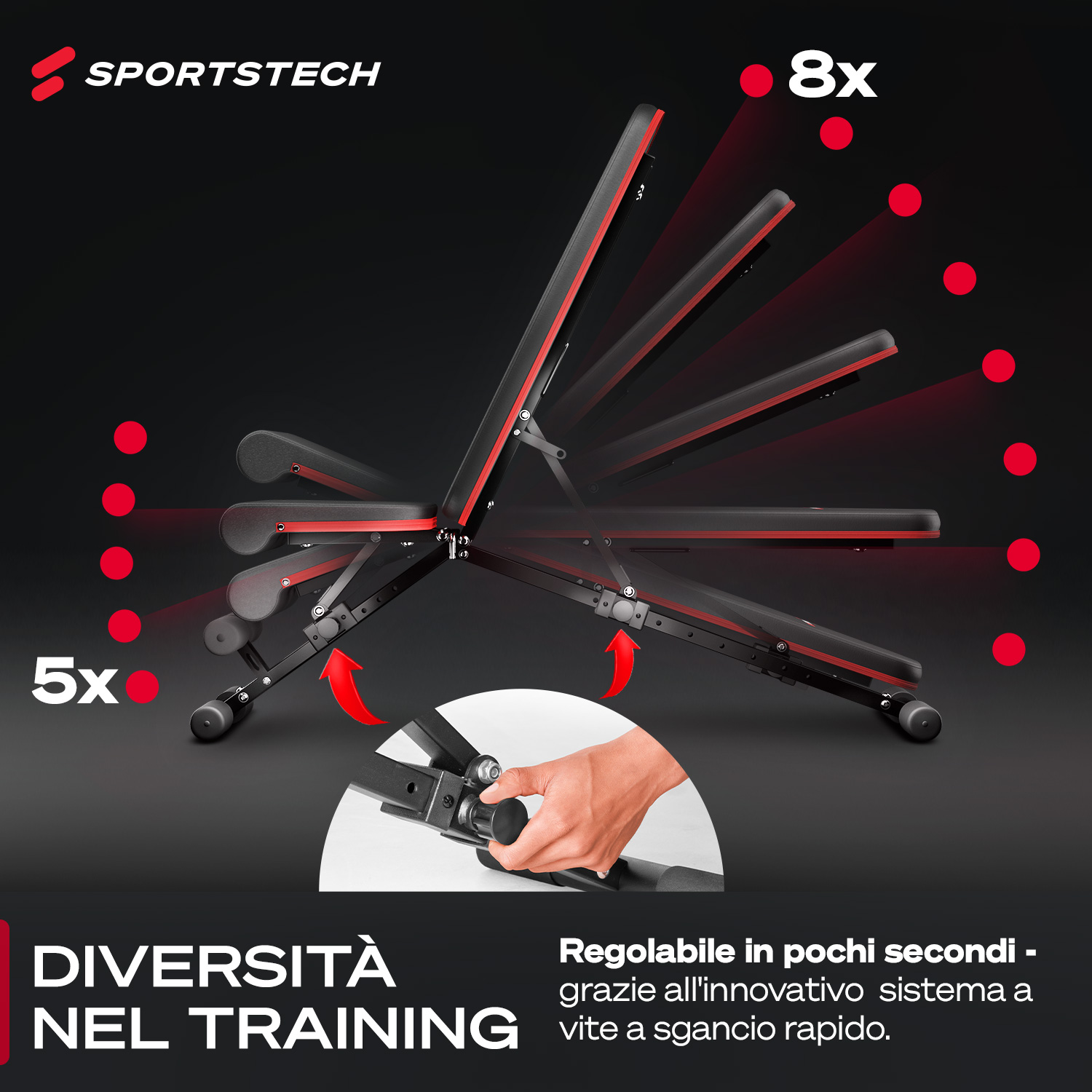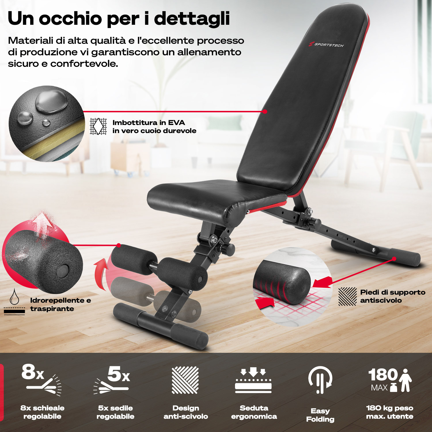Vuoi portare il tuo allenamento di forza a un nuovo livello e allenarti a casa tua in modo versatile come in palestra? Allora acquista SPORTSTECH panca palestra BRT400 con la sua costruzione extra stabile e 40 diverse possibilità di regolazione per allenamenti diversi! Qualità garantita con imbottitura in EVA resistente per una tenuta affidabile grazie al design antiscivolo. BRT400 panca palestra è particolarmente intelligente: il sistema Easy Folding System per piegare e riporre in modo ultracompatto!
