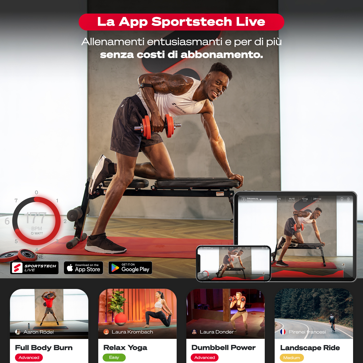 - Sportstech Live App: Fitness su misura per te. Bodyweight, Yoga o allenamento cardio.
