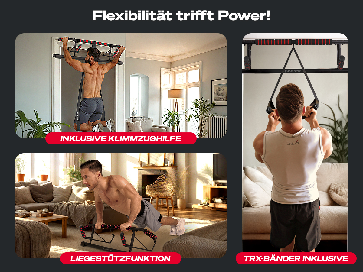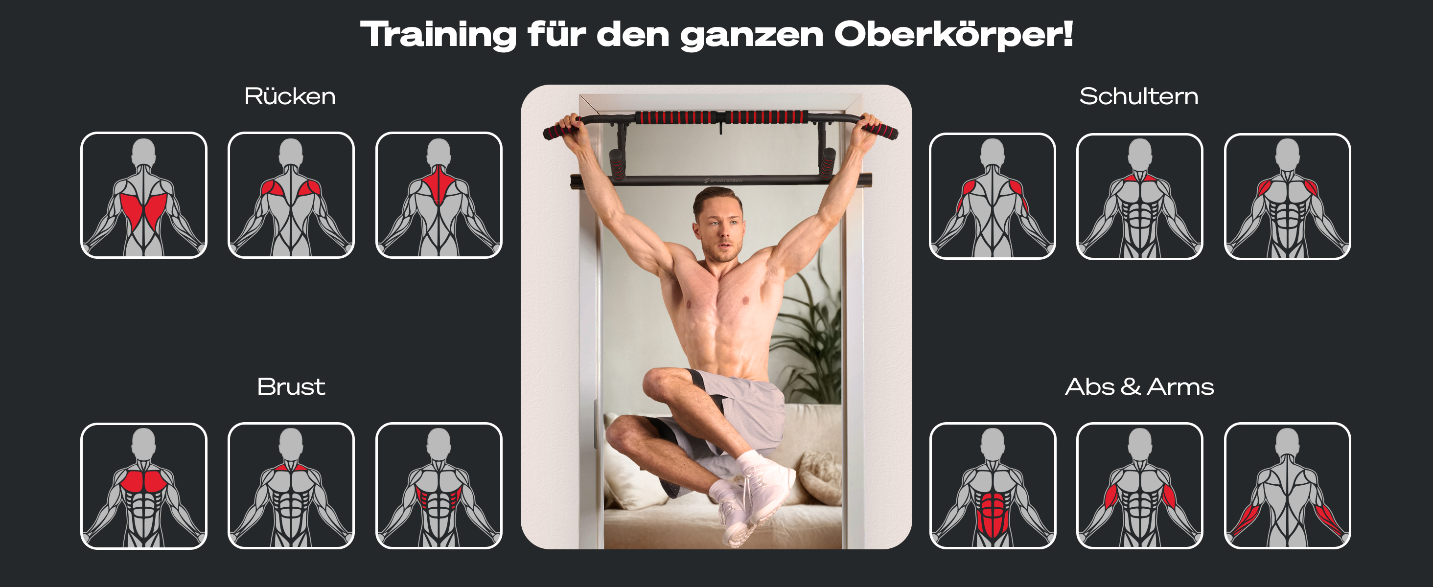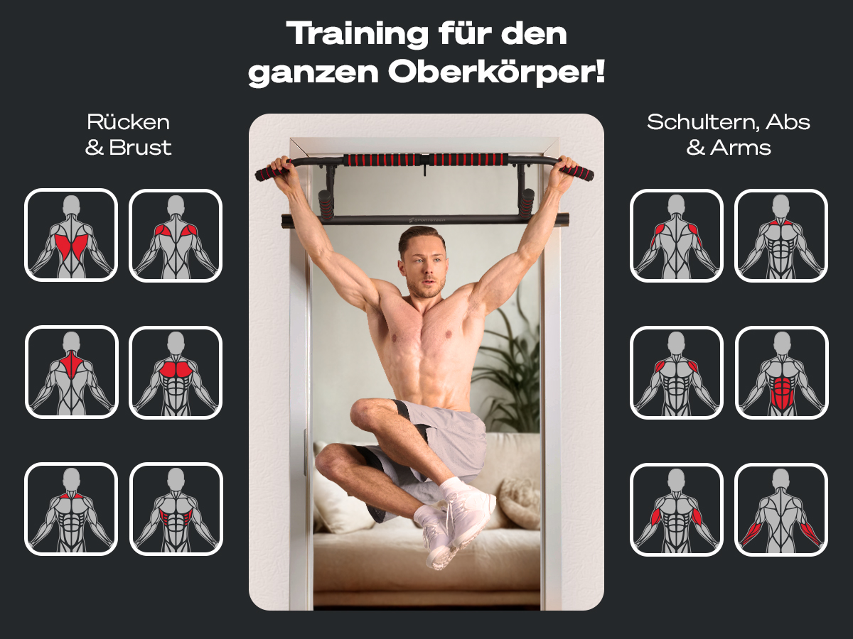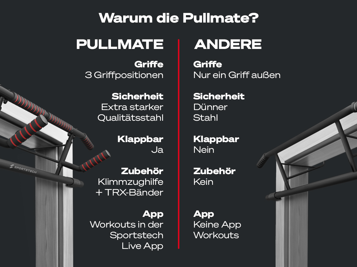 Der Pullmate eignet sich perfekt für vielseitige Eigengewichtsübungen wie: