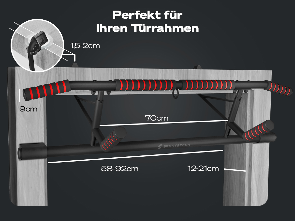 Ja, die Pullmate Klimmzugstange ist für Standard-Türrahmen mit folgenden Maßen geeignet: