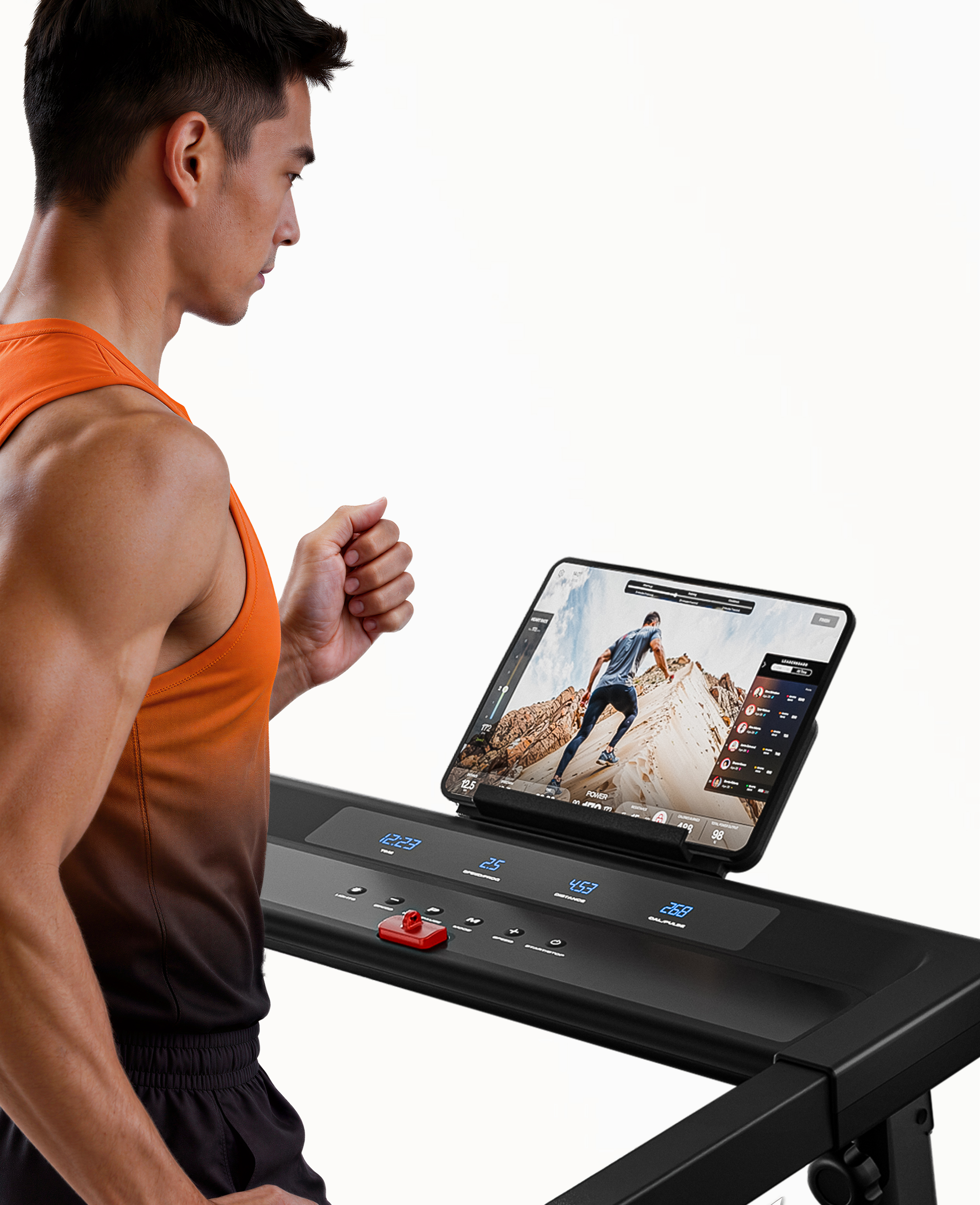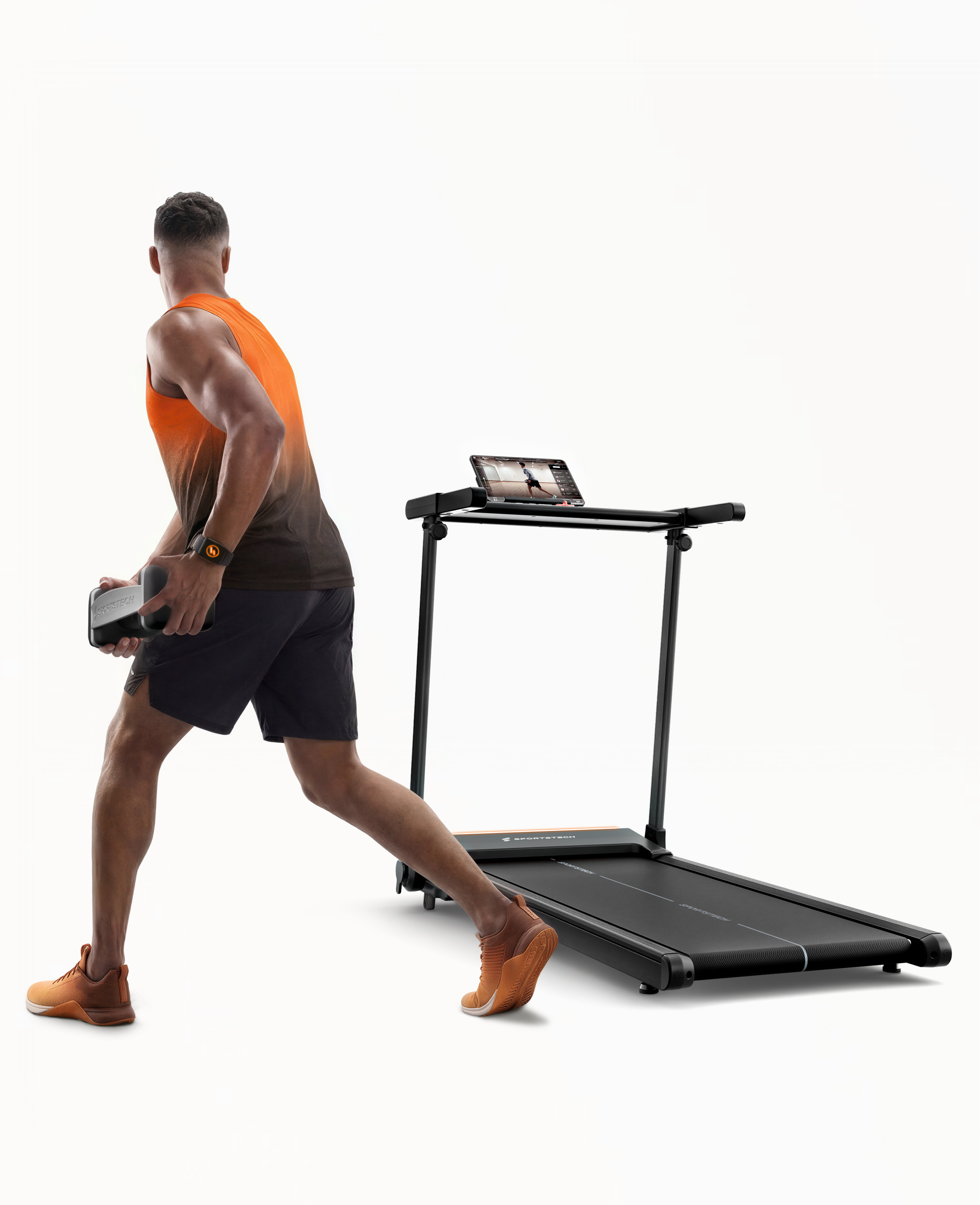 Das sProRun ist unser neustes Laufband für Zuhause. Es ist ideal für ein schnelles und effektives Lauftraining. Mit LED Farben, die sich nach Ihrer Laufgeschwindigkeit bis 12 km/h anpassen, einer Tablethalterung und LCD Display sind sie bestens vorbereitet. Die 9% Steigung sorgt für eine effektive Steigerung der Trainingsintensität, während das moderne Dämpfungssystem Ihre Gelenke schont. Mit praktischer Klappfunktion und smarter Steuerung ist das sProRun ideal für Ihr Homegym.
