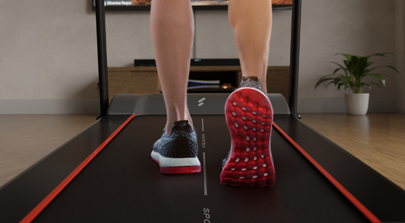 La superficie di corsa multistrato in materiali high-tech con cinque strati e battistrada laterali extra-large ammortizza il rumore per un allenamento di prima classe ideale per le articolazioni.